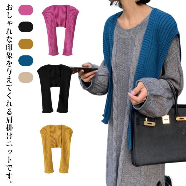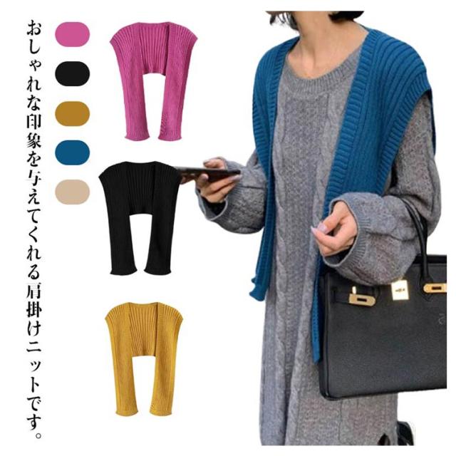 カーディガン風 肩掛け カーディガン風 リブニット 付け襟 肩掛けフェイクカーディガン フェイクカーディガン 冷房 薄手ニット レディース 羽織 ニット 肩巻き おしゃれ 冷房対策 エレガント ファッション