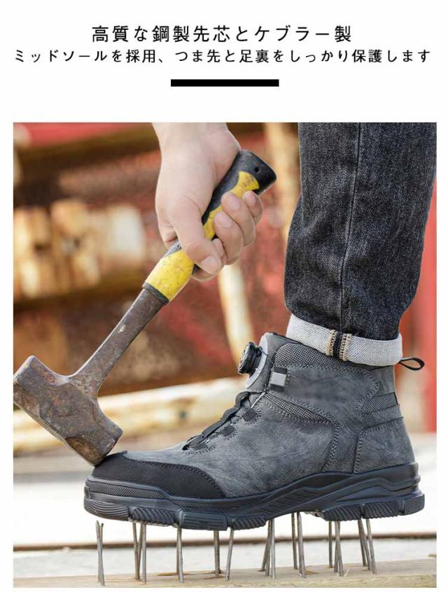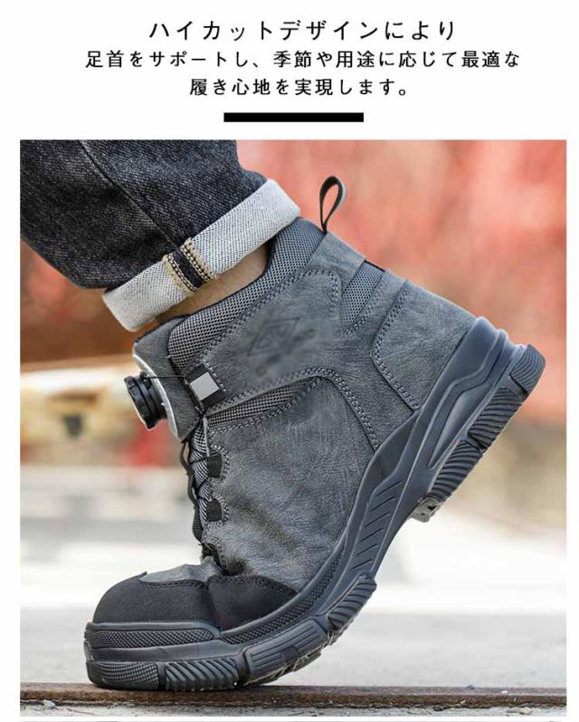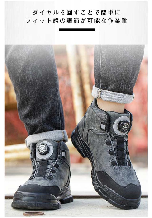 シューズ メンズ 作業靴 スニーカー 鋼先芯 甲高 靴 安全靴 ワークマン ダイヤル式 安全靴 ショートブーツ 作業靴 春 クッション性 ハイカット オールシーズン 作業着 幅広 大人 男性 雪靴 紐なし 安全スニーカー 耐摩耗 滑り止め 履きやすい