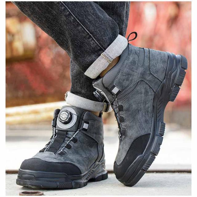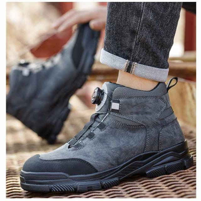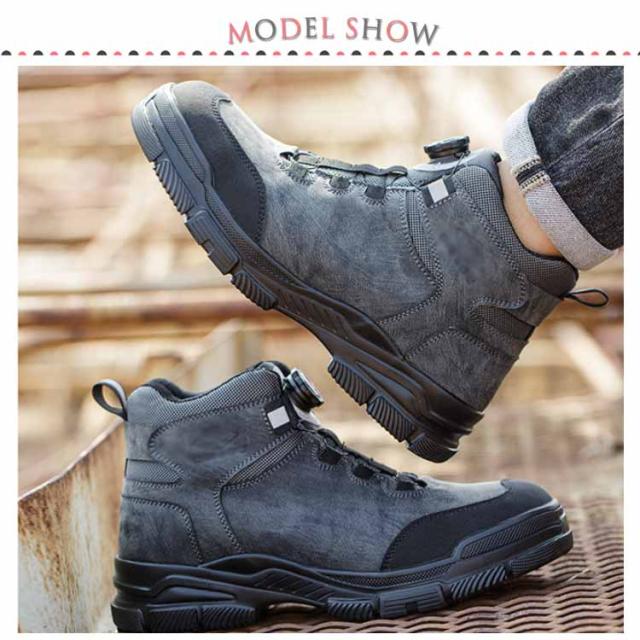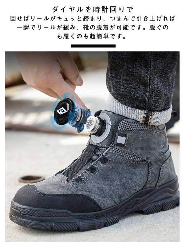 | ダイヤルを回すことで簡単にフィット感の調節が可能な作業靴 高質な鋼製先芯とケブラー製ミッドソールを採用、つま先と足裏をしっかり保護します。 ダイヤルを時計回りで回せばリールがキュッと締まり、つまんで引き上げれば一瞬でリールが緩み、靴の脱着が可能です。脱ぐのも履くのも超簡単です。 ハイカットデザインにより足首をサポートし、季節や用途に応じて最適な履き心地を実現します。 製造工場、現場工事、アウトドア、日常使いなどの場合に全部適用します。 | |