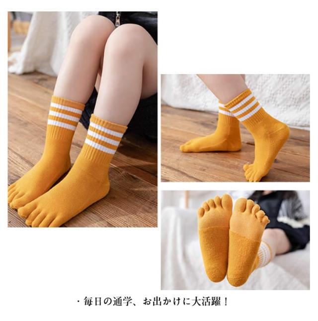 くつ下 靴下 綿 子供用五本指ソックス 子供 コットン 女の子 ライン入り ショートソックス 蒸れない 5足セット スポーツソックス 小学生 通園 通学 5足セット 吸汗 外反母趾予防 入学 卒園