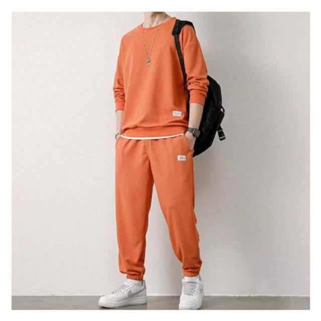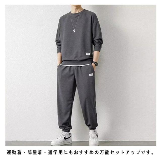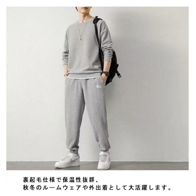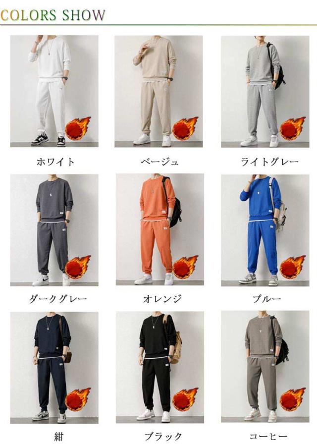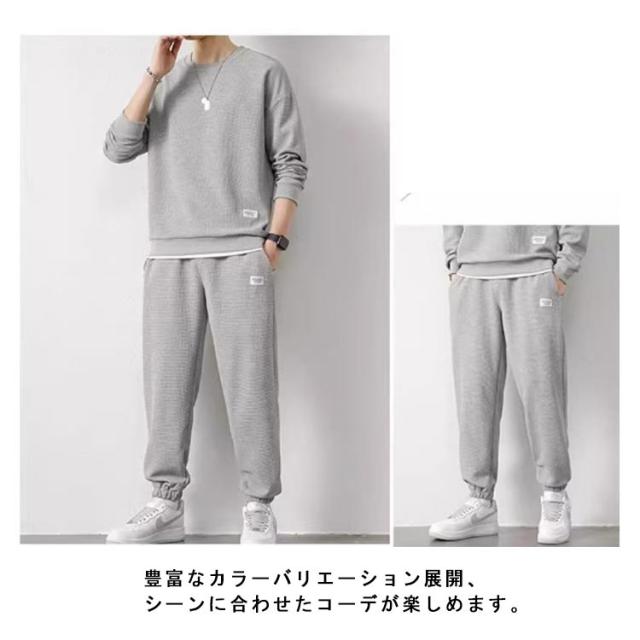ジャージ上下 メンズ スエット スウェット スウェット 秋冬 上下セット 裏起毛 トレーナー ロングパンツ ジャージ 長袖 無地 カジュアルセットアップ 長ズボン ワッフル トップス おしゃれ スポーツウェア 2点セット 冬服 重ね着風 運動着