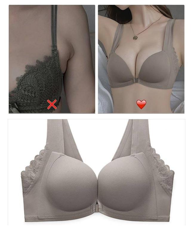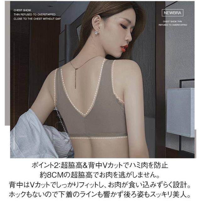 | フロントホックで 寄せる 盛れる 超脇高でハミ肉もしっかり補正 谷間メイクブラジャー こんなお悩みありませんか? 谷間がない… 離れた胸が気になる… バストの位置が下がってきた… ブラに背中のお肉が乗る 背中のホックが止めずらい… そのお悩みまとめて解決! つけるだけで谷間メイク 見た目サイズ2カップアップ ポイント1:厚さ約2cmの立体ボリュームアップカップ サイドに厚みのある立体カップでバストをグイッと寄せてふっくらバストに。 フロントホックで両脇からお肉を引き寄せてノンワイヤーでもしっかり盛れます。 ポイント2:超脇高&背中Vカットでハミ肉を防止 約8cmの超脇高でお肉を逃がしません。 背中はVカットでしっかりフィットし、お肉が食い込みずらく設計。 ホックもないので下着のラインも響かず後ろ姿もスッキリ美人。 ポイント:カップ表面はシームレス仕様 カップ表面は装飾なしのシームレス仕様。 フリルやレースが付いているブラは下着のラインがボコボコ…なんてことも。 シンプルデザインで薄手の洋服でもラインが響かずおしゃれを楽しめます。 ポイント:ノンワイヤーでストレスフリー しっかり盛れるのにノンワイヤ−で締め付け・食い込みゼロ 伸縮性のある素材なので動いてもしっかりフィット。 軽い付け心地なのでナイトブラにもオススメ◎ | |