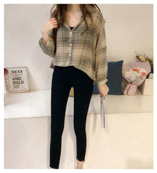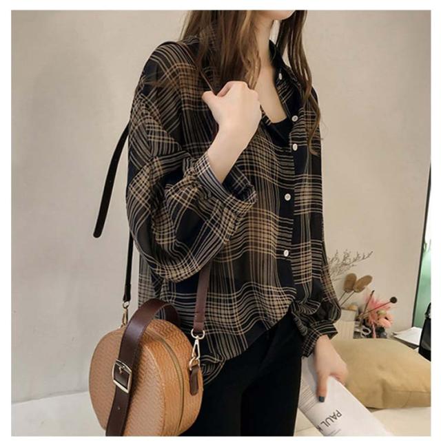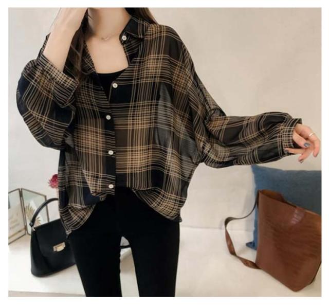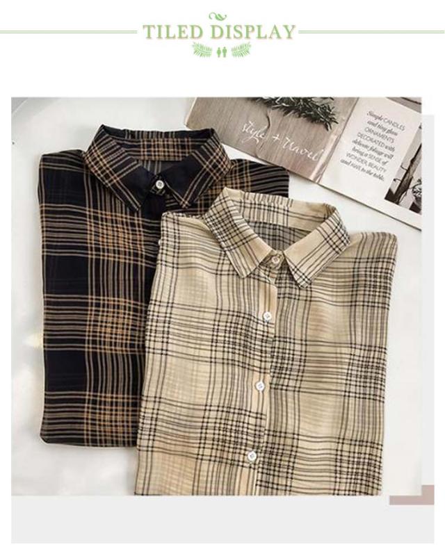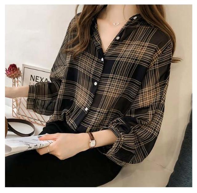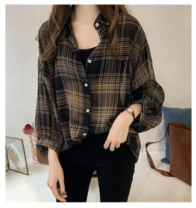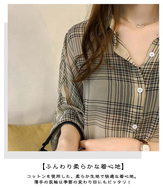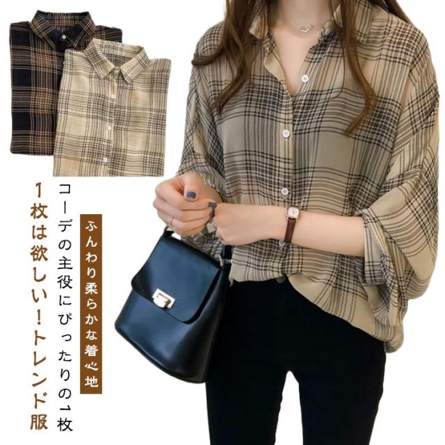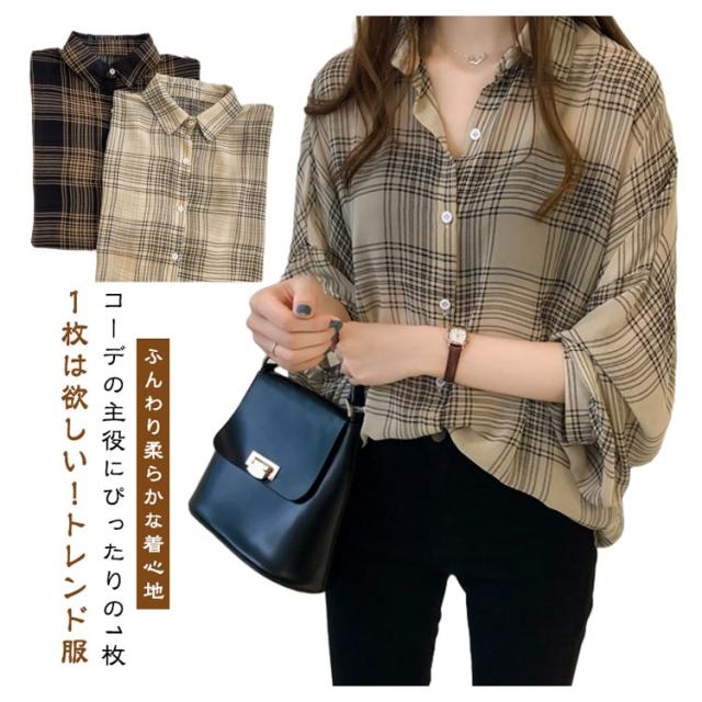 レディース バルーン袖 長袖 シャツ シャツ 羽織り 長袖シャツ 大きいサイズ 韓国 ェック柄 チェック 春秋 トップス トップス コーデ ルック チェック ブラウス ゆったり ブラウス 女性 かわいい 可愛い カジュアル レトロ 学生