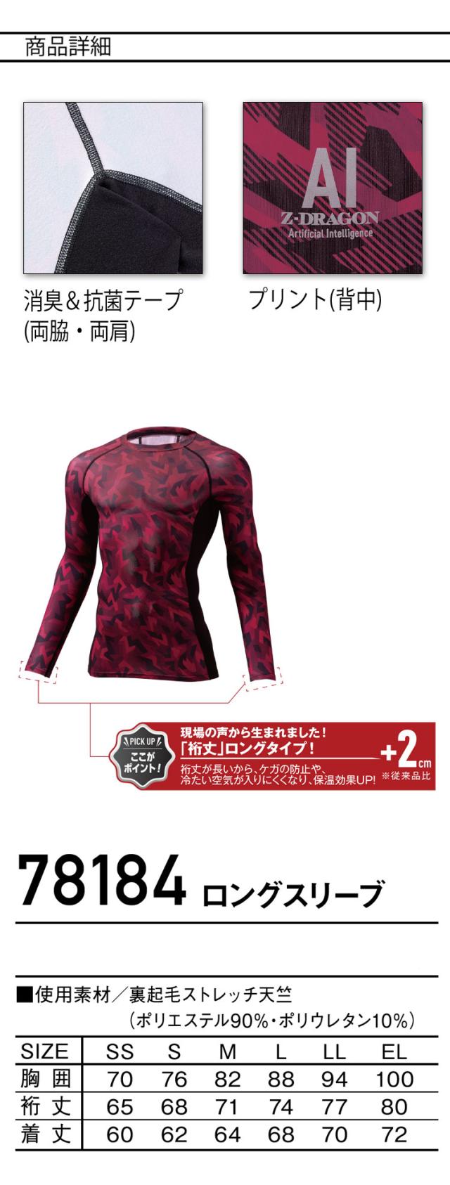 インナー Z-DRAGON ジードラゴン ロングスリーブ 78184 コンプレッション 作業着 秋冬 長袖 自重堂 Jichodo 2025年秋冬新作