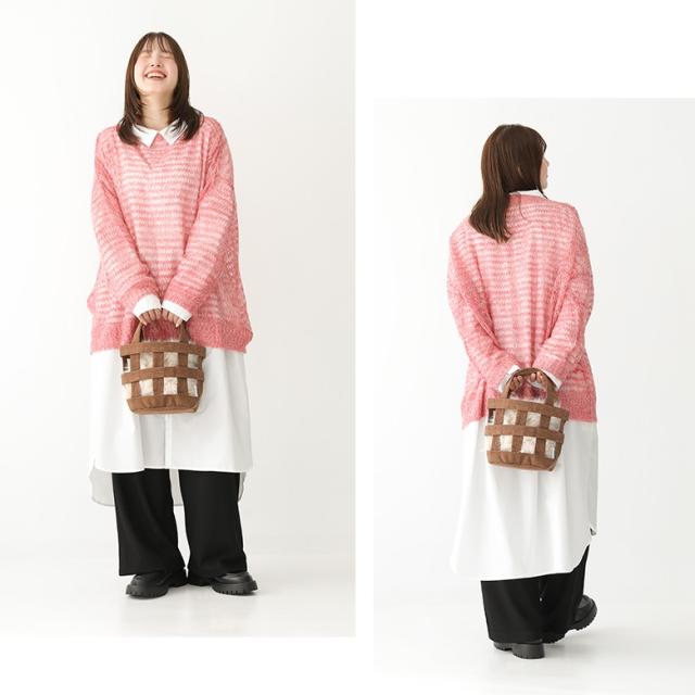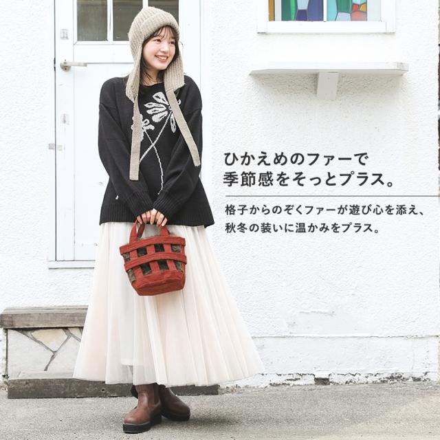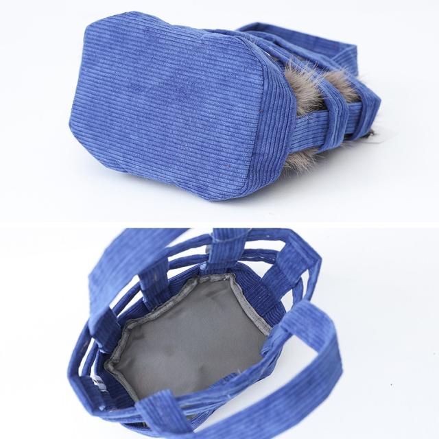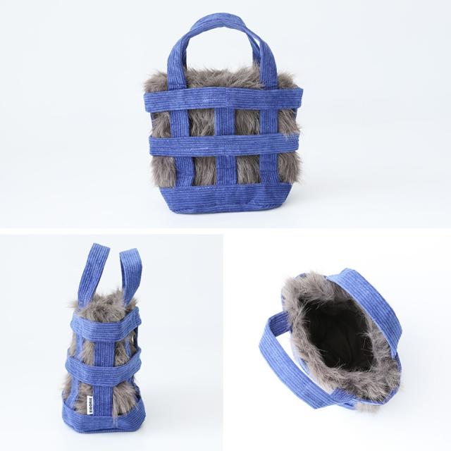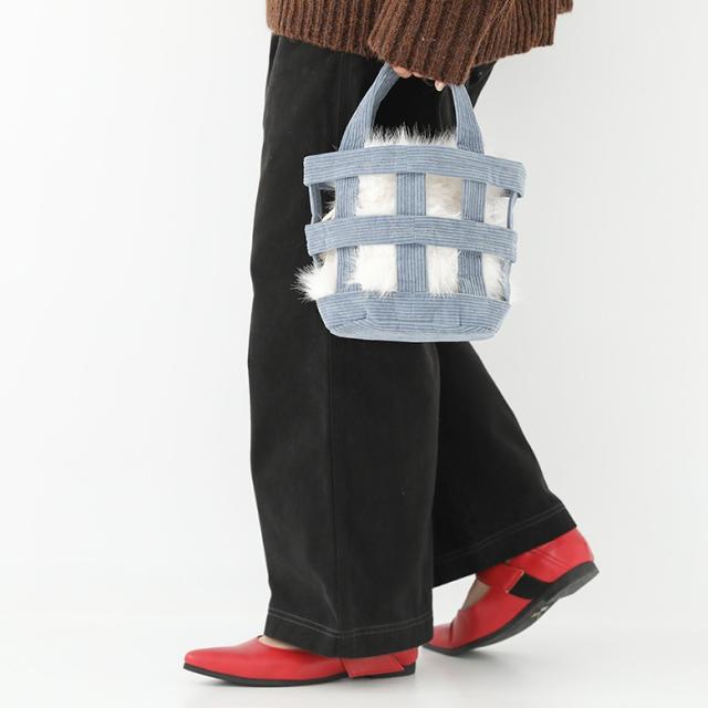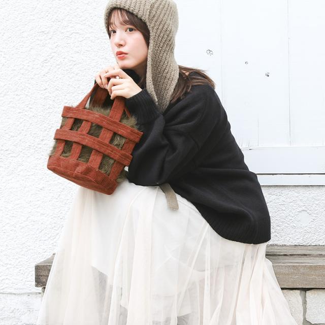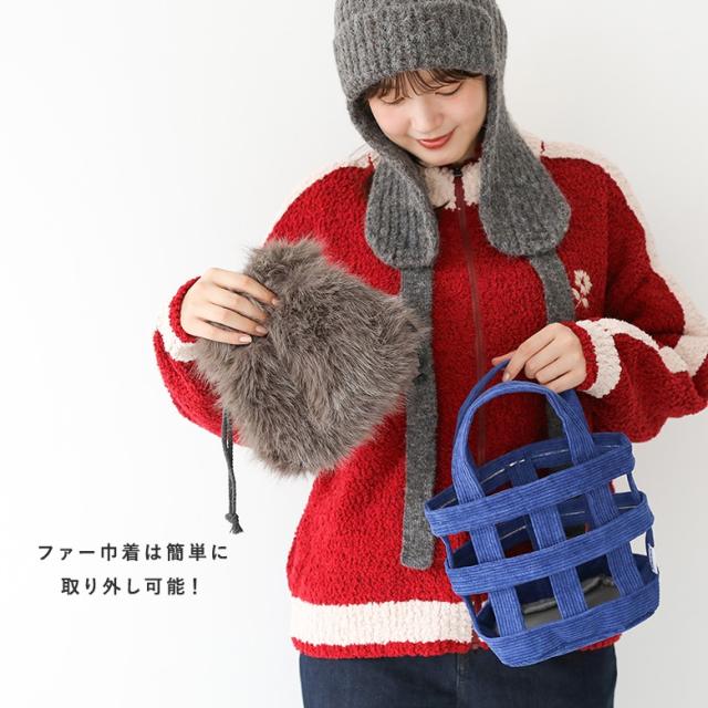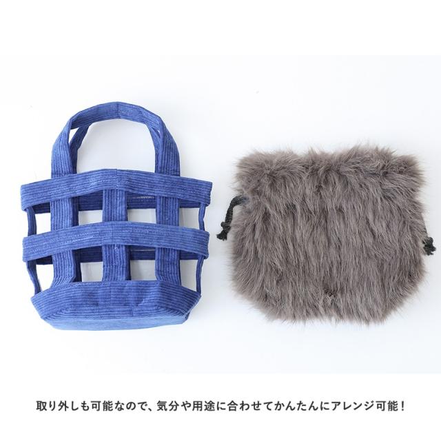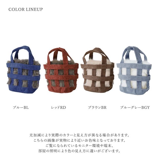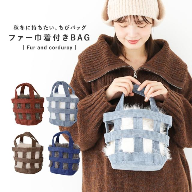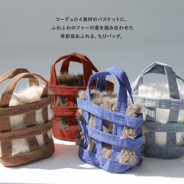 『コーデュロイバスケットバッグ』【メール便不可】【20】[ハンドバッグ レディース 鞄 かばん カバン バスケットバッグ ミニバッグ 手さげバッグ コーデュロイ生地 ファー 巾着 取り外し可能 アレンジ 秋 冬]
