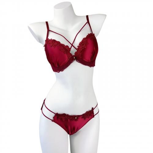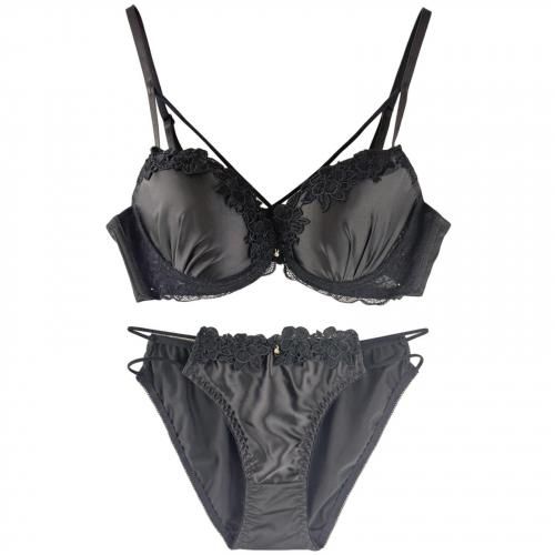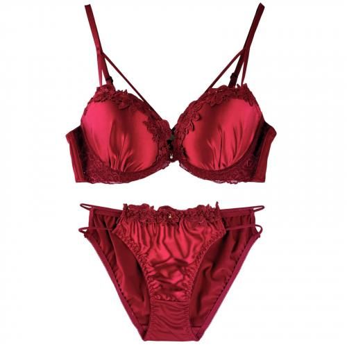 ブラジャー ショーツ セット ブラセット ランジェリー 下着 クロス サテン ストリング デコルテ スタイリッシュ 脇高 花柄 光沢 華やか 自然 胸元 レース 谷間 レッド ブラック