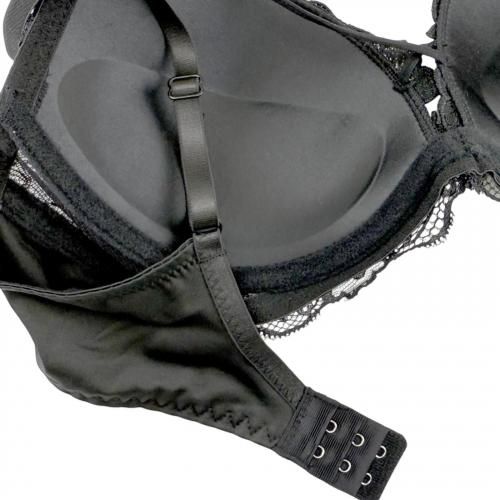 前中心が低いことで、左右のバストを中央に寄せやすく、これにより無理なく自然な谷間を形成することができます。