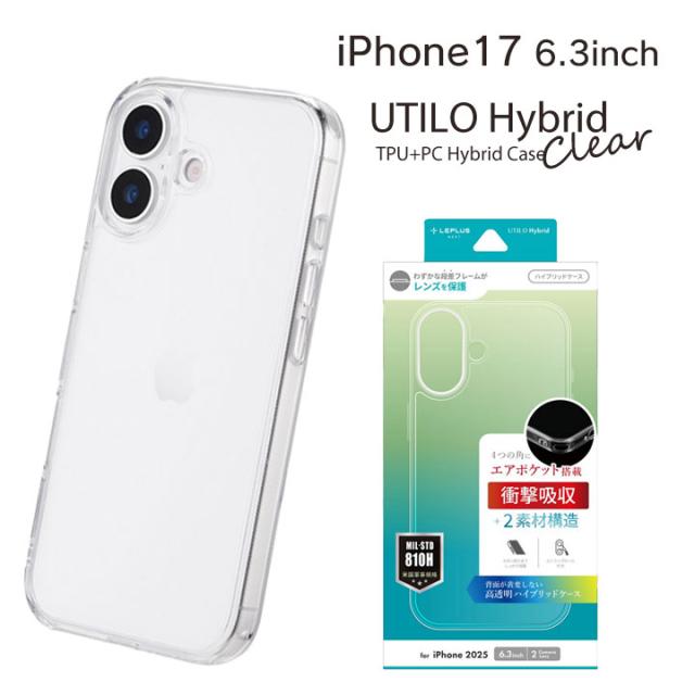 iPhone17 6.3インチ 耐傷・耐衝撃ハイブリッドケース 「UTILO Hybrid」 クリア アイフォン17 カバー メール便送料無料