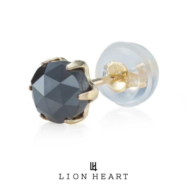 ライオンハート K18ゴールド 0.5ct ブラックダイヤモンドピアス Lサイズ LION HEART 1EA183A0YG スタッドピアス 1点売り 片耳用 ピアス ダイヤモンド K18 メンズ