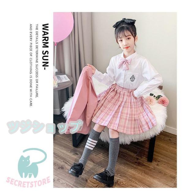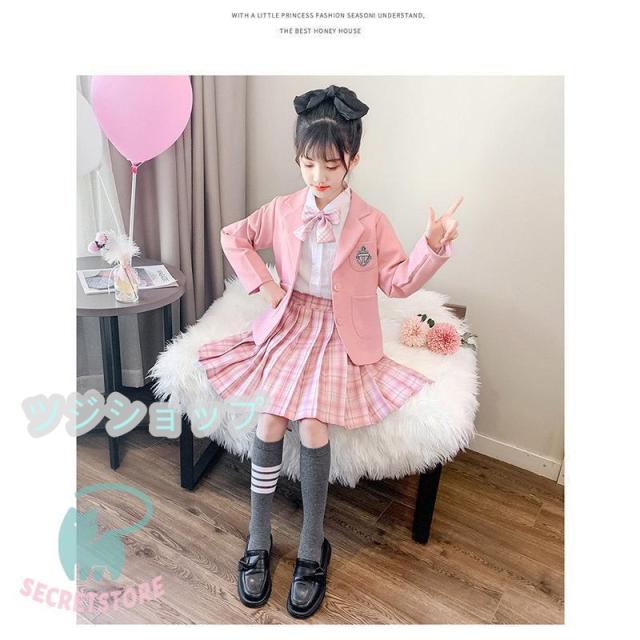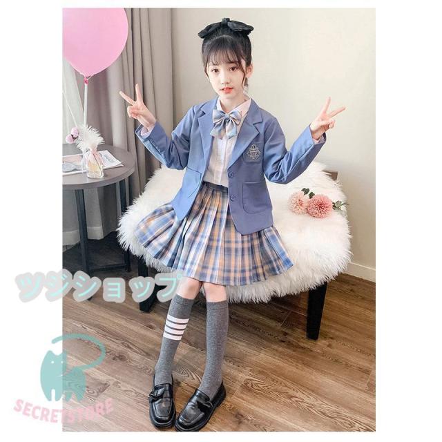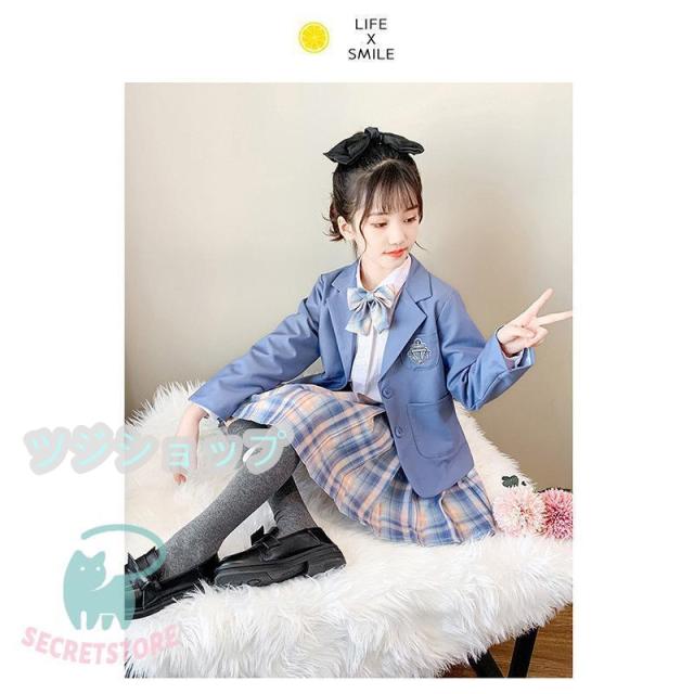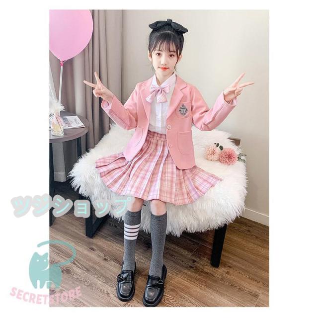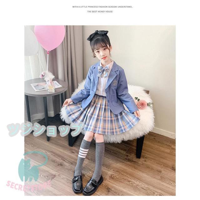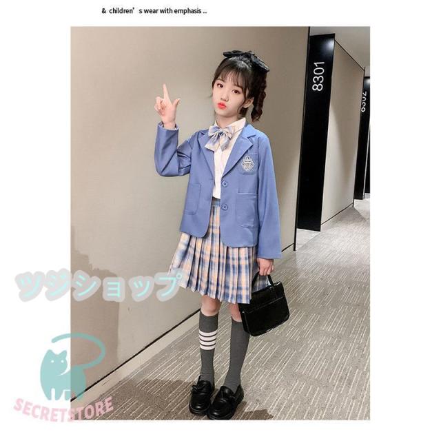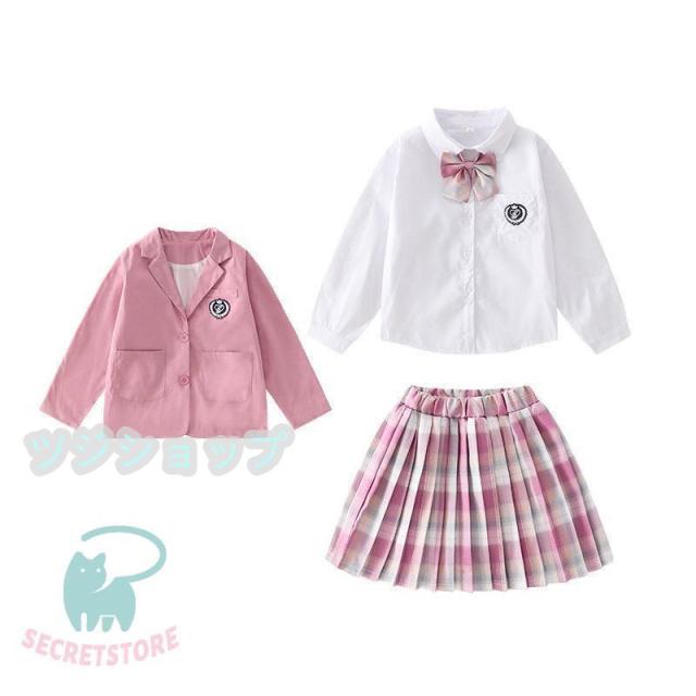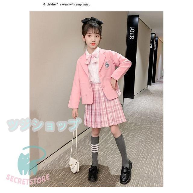 スーツ 女の子 フォーマルスーツ 3点セット 入学式 卒業式 小学生子供服 高校生 JK制服 スカート発表 入学式 学生服 フリルスカート キッズ ピンク ブルー
