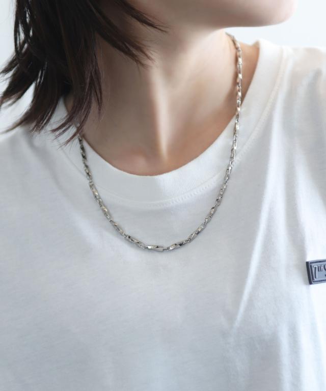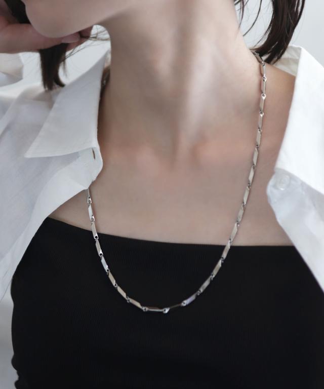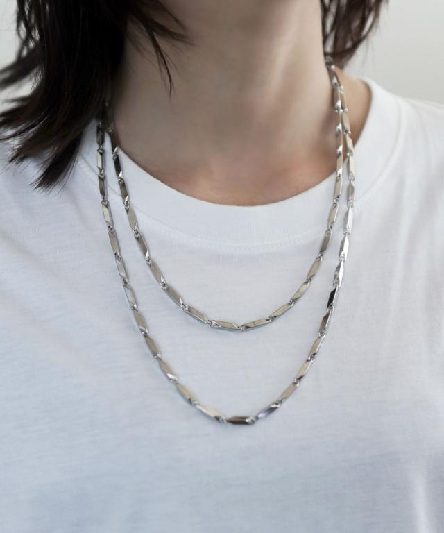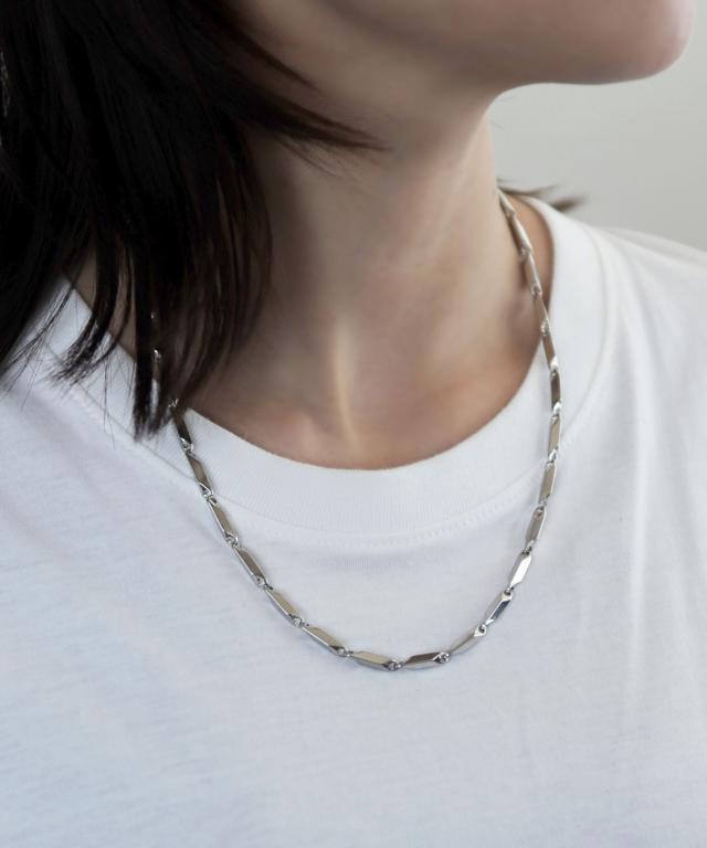 ボリューム感のあるスティックパーツを使用した重量感のあるチェーンネックレス。