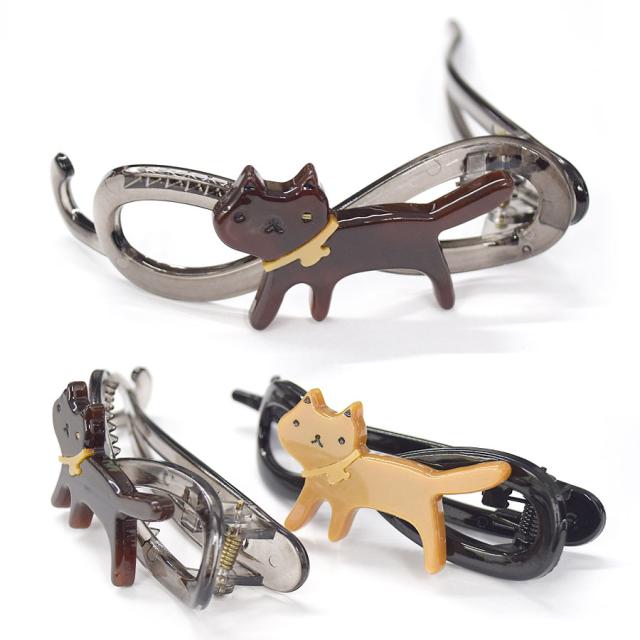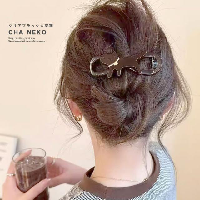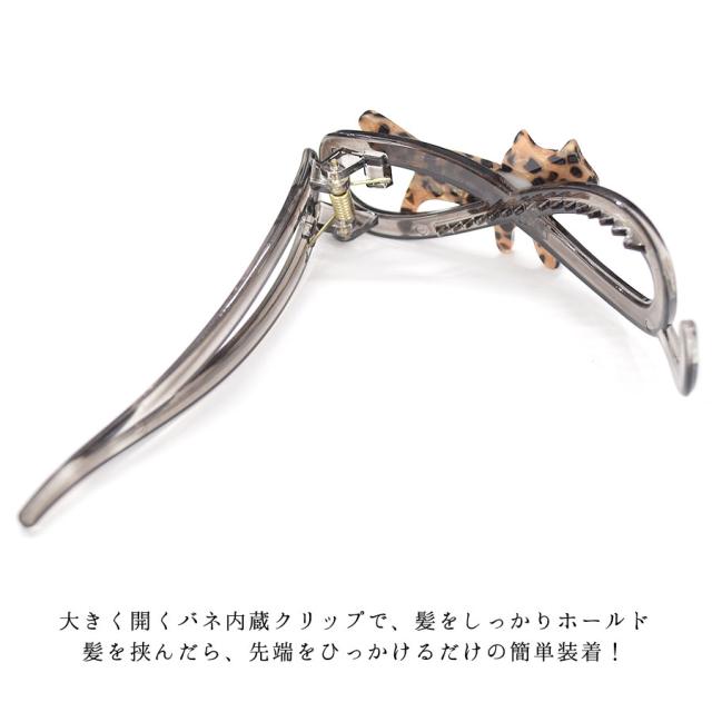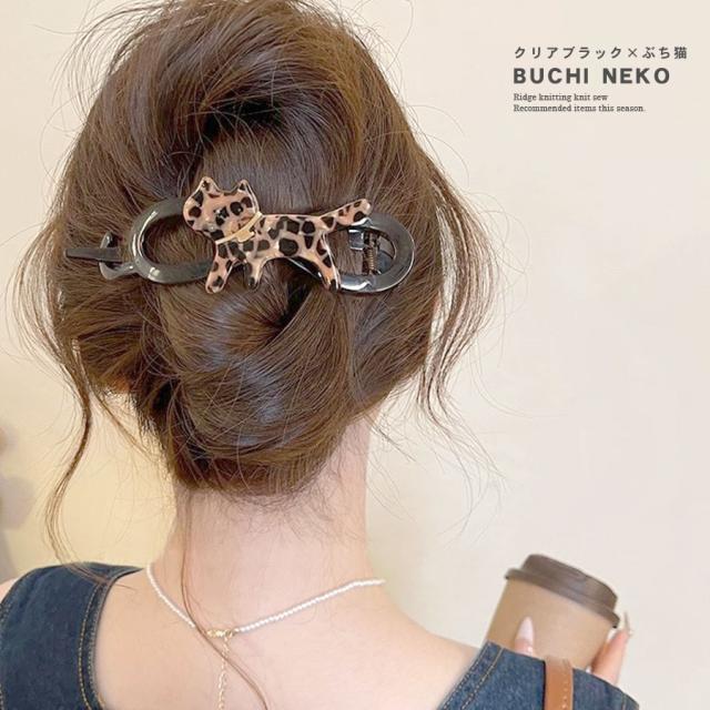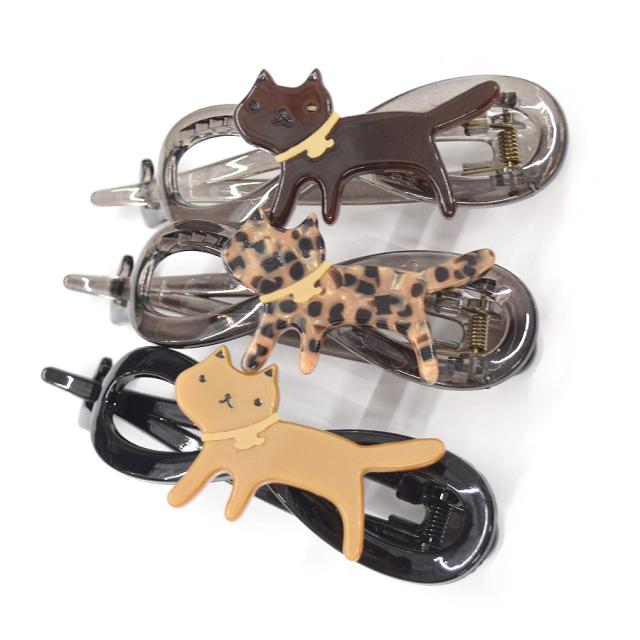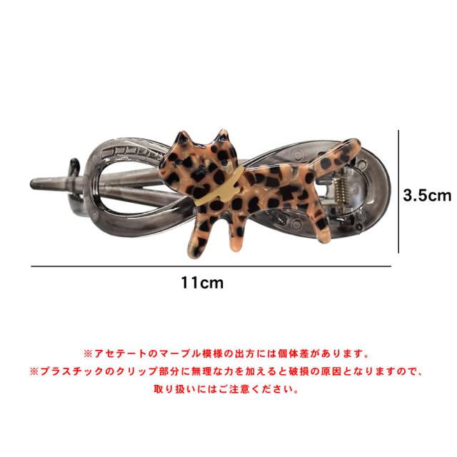【ヘアクリップ 猫 大きめ バナナクリップ しっかり 動物 レディース ヘアアクセサリー バレッタ アニマル ユニーク おしゃれ かわいい マーブル アセテート アセチ べっ甲風 ヒョウ柄 ぶち ネコ キャット cat シンプル 大人】