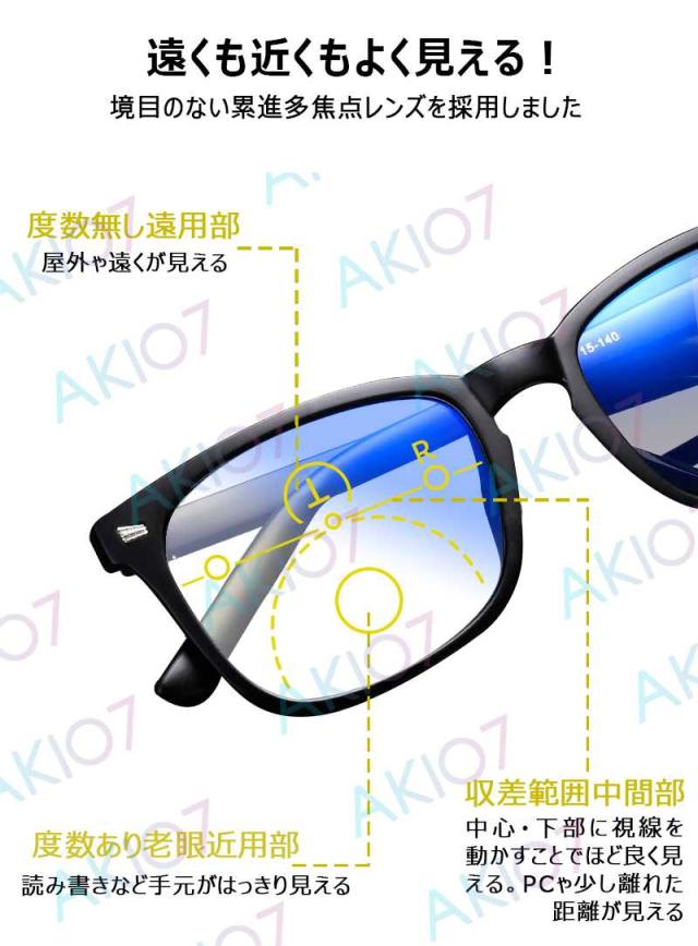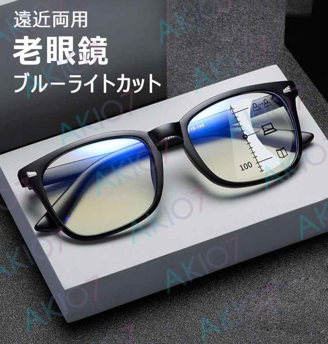 【度数+0.00〜+4.0選択可・ケース付き】老眼鏡 ブルーライトカット 老眼用メガネ 遠近両用 累進多焦点 おしゃれ 紫外線カット 眼鏡 度なし pcメガネ パソコン用メガネ メンズ レディース かっこいい 男女兼用 軽量
