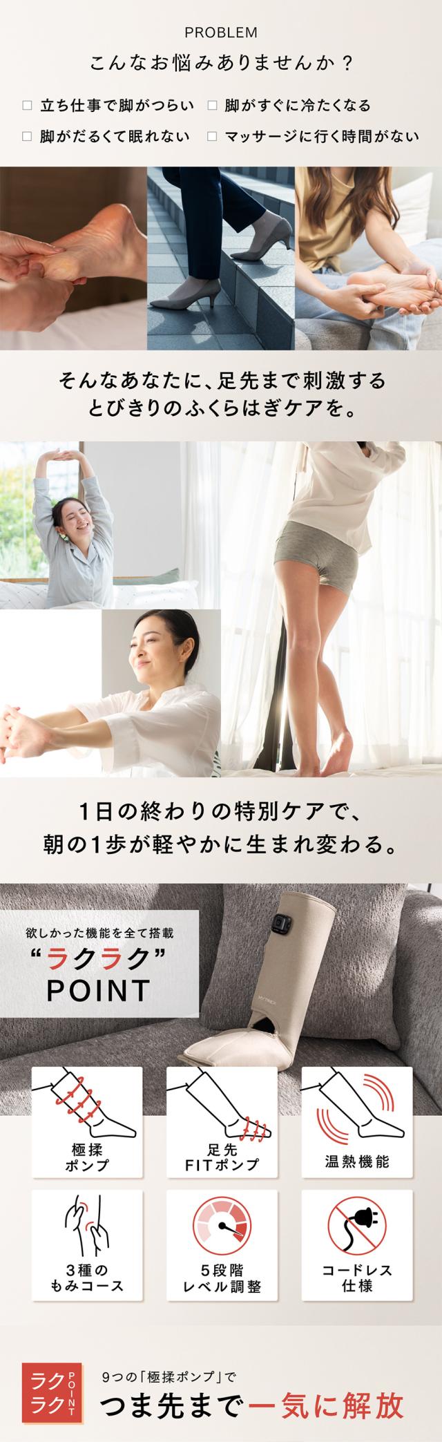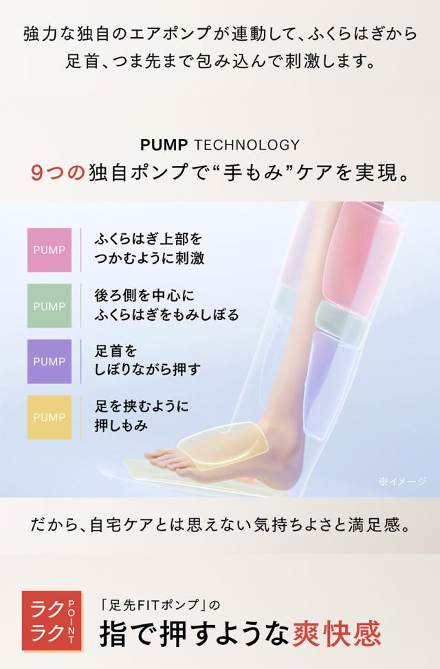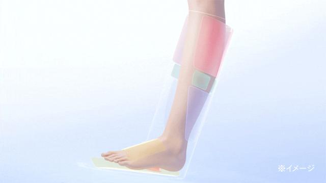 強力な独自のエアポンプが連動して、ふくらはぎから足首、つま先まで包み込んで刺激します。