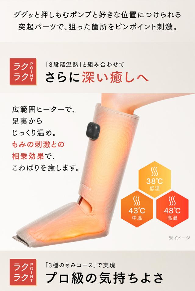 温熱ふくらはぎケア 足 ふくらはぎ むくみ 疲れ 空気圧 温熱 Tpye-C充電式 コードレス 3段階温熱 トリプル極揉ポンプ 3種のもみコース 5段階レベル調整 10分オートOFFタイマー ギフト