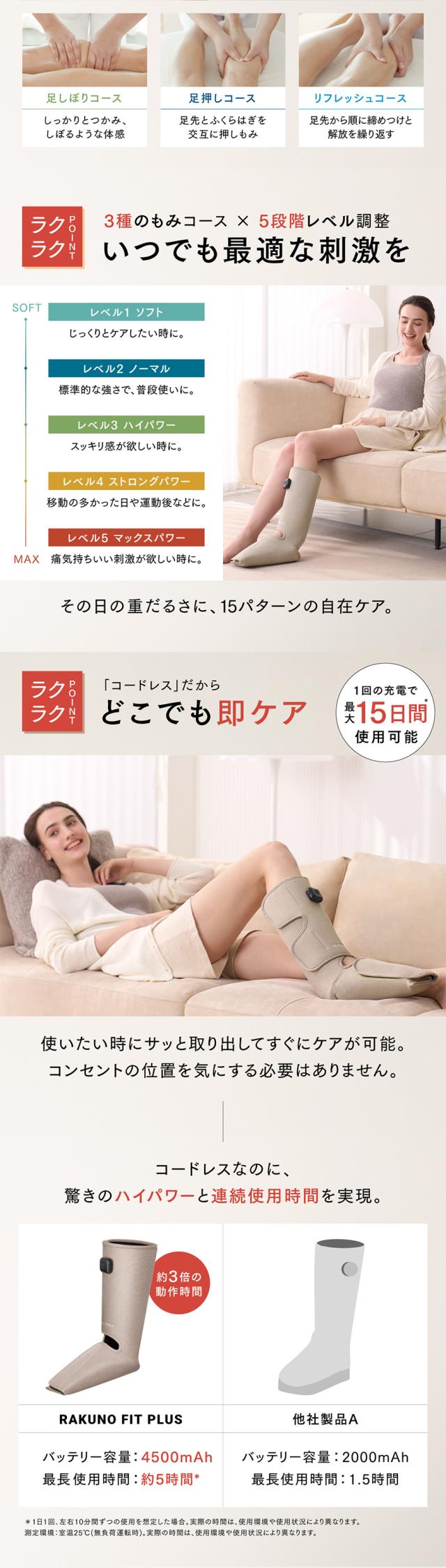 温熱ふくらはぎケア RAKUNO FIT PLUS 【公式】マイトレックス ラクーノ フィット プラス 足 足裏 足先 つま先 足首 ふくらはぎ むくみ 疲れ 空気圧 温熱 Type-C充電式 コードレス 3段階温熱 9つのポンプ 3種のもみコース 5段階レベル調整 10分オートOFFタイマー