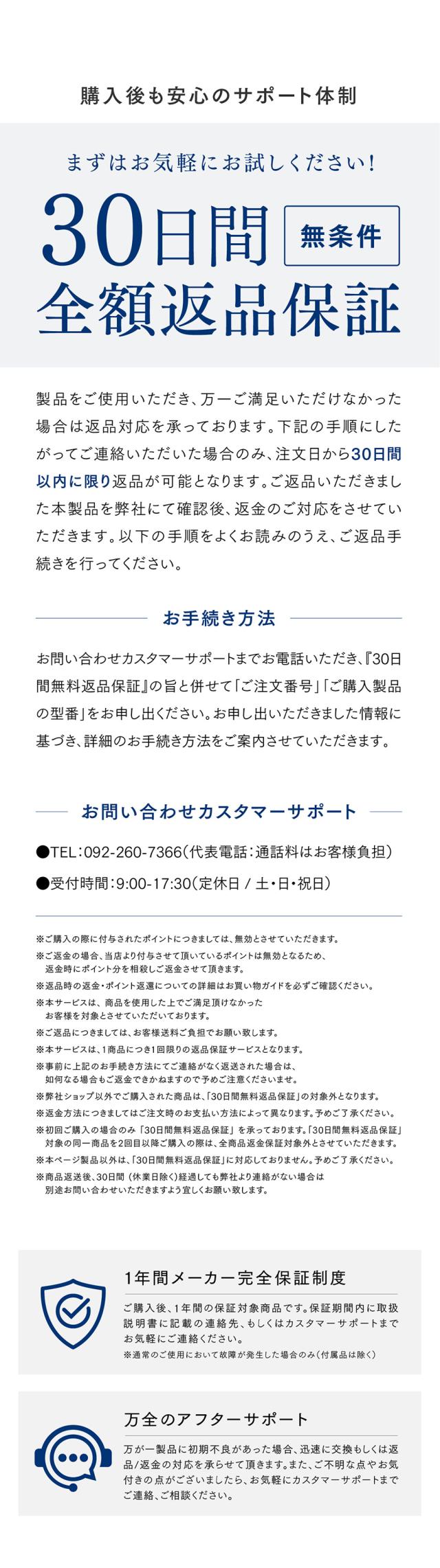 ・故障や不具合が生じた場合は、お買い上げの販売店または弊社カスタマーサポートに相談する。お客様ご自身では分解や修理などをしないでください。保証の対象外となります。