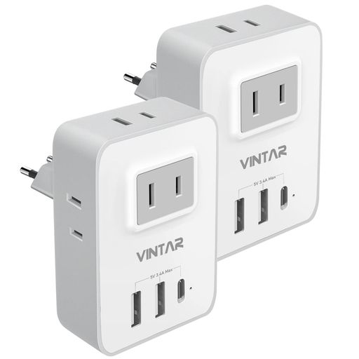 変換プラグ Cタイプ VITNAR 海外 変換プラグ 電源変換アダプターコンセントコンバータ ACコンセント4個 USB Aポート2個 TYPE Cポート1個 韓国、スペイン、ドイツ ベトナム、ヨーロッパなど(2 PCS)