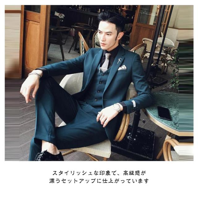 フォーマルスーツ メンズ 3点セット ジャケット+ベスト+パンツ メンズスーツ スリムスーツ 正装 紳士 長ズボン 紳士服 礼服 通勤 オフィス 就活 面接 カジュアル 上品 お呼ばれ 結婚式 二次会 パーティー 全4色