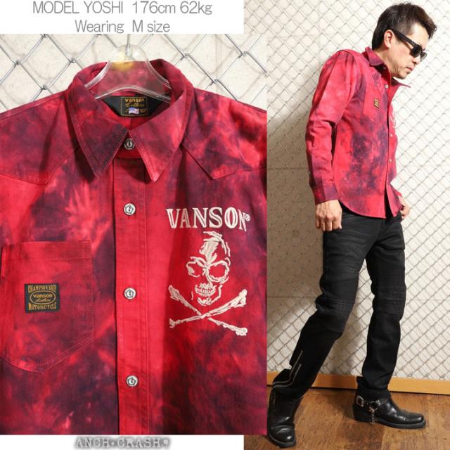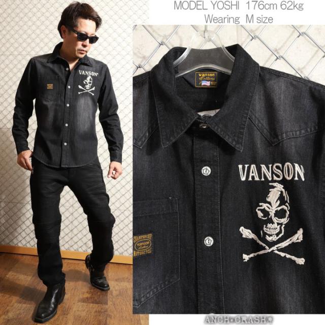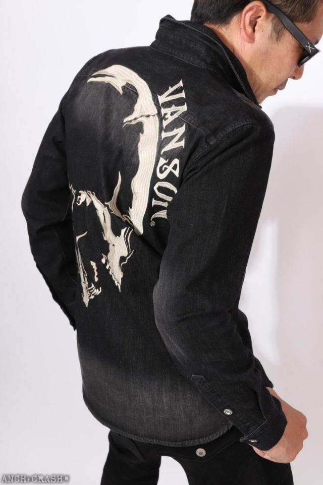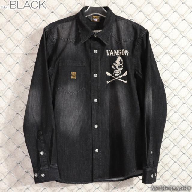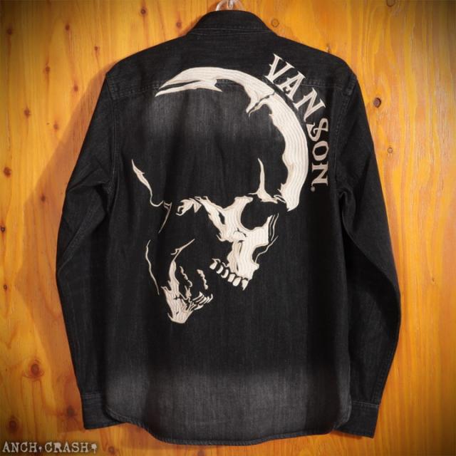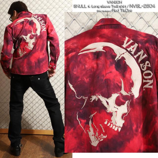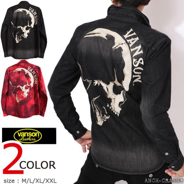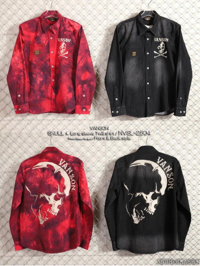 VANSON スカル ツイル 長袖シャツ (NVSL-2504) 【送料無料】バンソン 刺繍