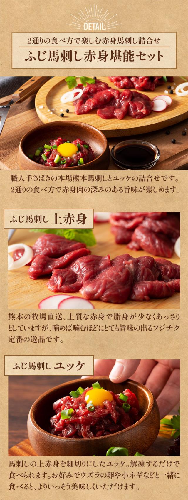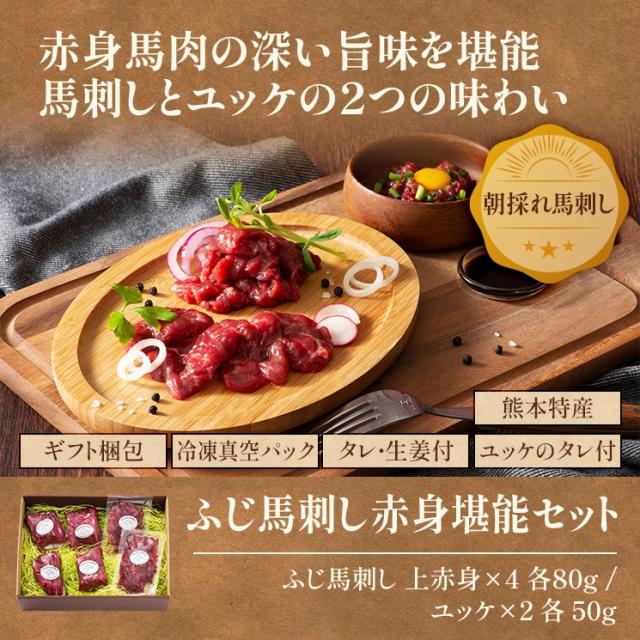 ふじ馬刺し 上赤身堪能セット 2種 8人前 420g 上赤身80g×4・ユッケ50g×2 馬刺しのタレ・生姜付き 送料無料 お取り寄せ 食べ比べ 熊本 赤身 霜降り