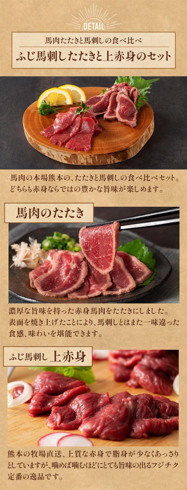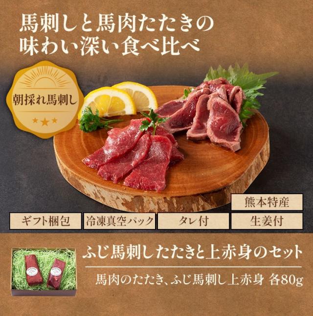 ふじ馬刺し たたきと上赤身のセット 2種 4人前 160g ギフト 上赤身、たたき 各80g 送料無料 お取り寄せ 食べ比べ 熊本 赤身 霜降り