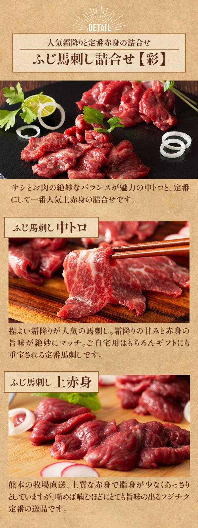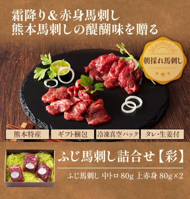 ふじ馬刺し詰合せ 彩 2種 6人前 240g ギフト 馬刺し中トロ80g・上赤身80g×2P 送料無料 お取り寄せ 食べ比べ 熊本 赤身 霜降り 真空パック 冷凍