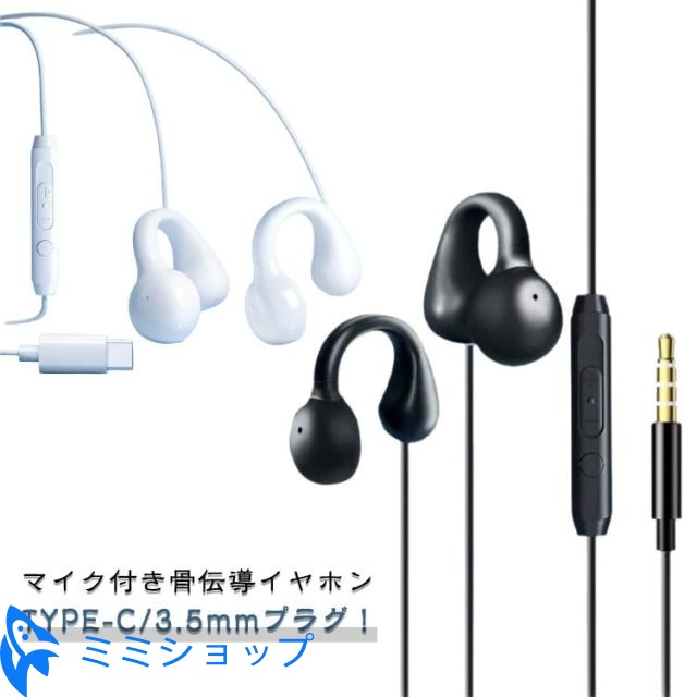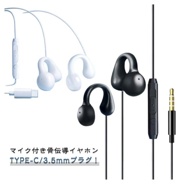 3.5mm TYPE-C イヤホン 耳を塞がない 有線イヤホン マイク付き 骨伝導ヘッドホン 耳を塞がない 有線タイプ イヤホン ながら聴きイヤホン 開放型 骨伝導 テレワーク 白 骨伝導ヘッドセット 音量調整 耳を塞がない 骨伝導イヤホン WEB会議 スポーツ 自転車 軽量