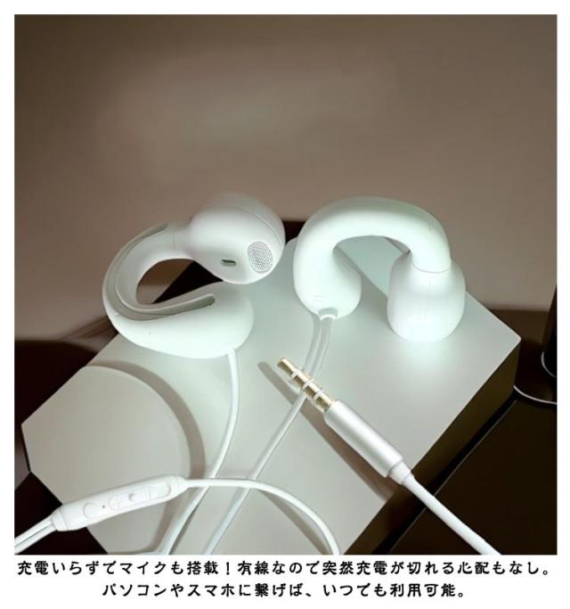 | マイク付き骨伝導イヤホン TYPE-C/3.5mmプラグ! 独自の骨伝導技術で耳の穴を塞ぐことがないので、長時間のワークアウトでも快適に過ごすことができます。 リモコン付きなので、再生/ 停止、通話応答、音量調節が手元で操作可能! 充電いらずでマイクも搭載!有線なので突然充電が切れる心配もなし。パソコンやスマホに繋げば、いつでも利用可能。 着けているのを忘れる装着感!軽量なうえに、耳掛け式の安定感により、快適な装着感を実現。 | |