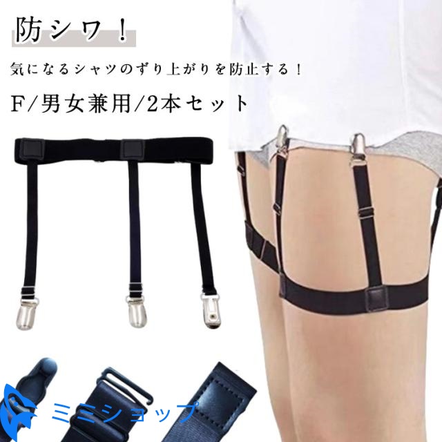 ベルト レディース メンズ ずれ防止 2本セット シャツ用 シャツガーター シャツ ゴムベルト シャツズレ防止 はみ出し防止 シャツクリップ サスペンダー ガーターベルト シャツ スーツ ビジネス 便利 調節可能