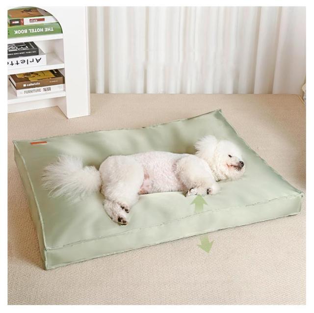 | クールなタッチの表面で吸湿性と通気性があり、快適な寝心地のベッド。 防水性でベタつかない。 ベッドの高さは8-11cmのしっかりした厚さ。 ベッドの中は、型崩れしずらいクラウドコットンを使用。 表面の生地は、防水メモリークロスを使用。万が一の時の唾液や尿、毛の処理などにも便利です。 噛みついても破れにくい生地加工を施されていますのため、耐久性に優れています。また糸くず、色あせ、毛玉がないのも嬉しいポイントです。 底部には滑り止め機能が付き、防湿性と耐久性に優れています。 カバーは取り外しができるので、洗濯機で洗うことができ、いつでも洗ってペットと飼い主の健康を守ることができます。 | |