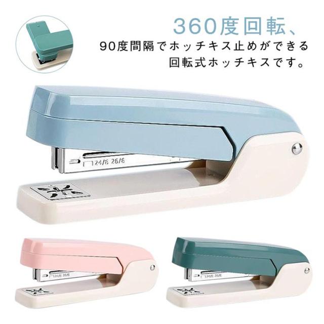 回転式 ステープラ ステープラー ホッチキス 360°回転 タテ ヨコ 中綴じ デスクトップステープラー オフィス 家庭用 文房具 契約書 書類整理 ファイル整理 日用品雑貨 文具 事務用品 雑誌 冊子 製本 便利 事務グッズ 日用品