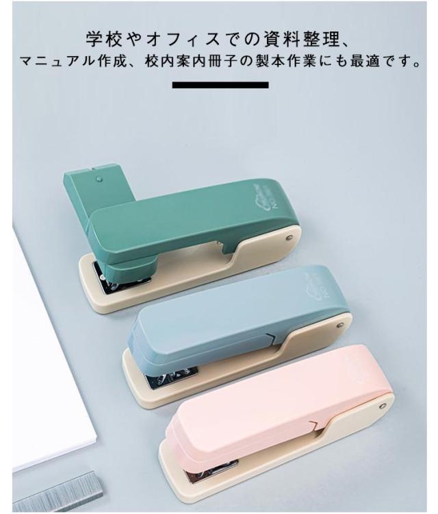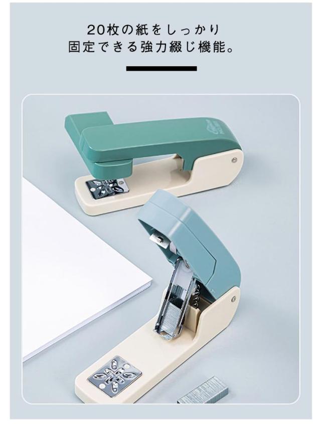| 360度回転、90度間隔でホッチキス止めができる回転式ホッチキスです。 縦綴じや横綴じはもちろん、角度調整ができるので中綴じもラクラク! 冊子の折り込み部分にもスムーズに針を打ち込めます。 20枚の紙をしっかり固定できる強力綴じ機能。 パンフレットや会議資料、同人誌など幅広い用途に活躍! 学校やオフィスでの資料整理、マニュアル作成、校内案内冊子の製本作業にも最適です。 | |