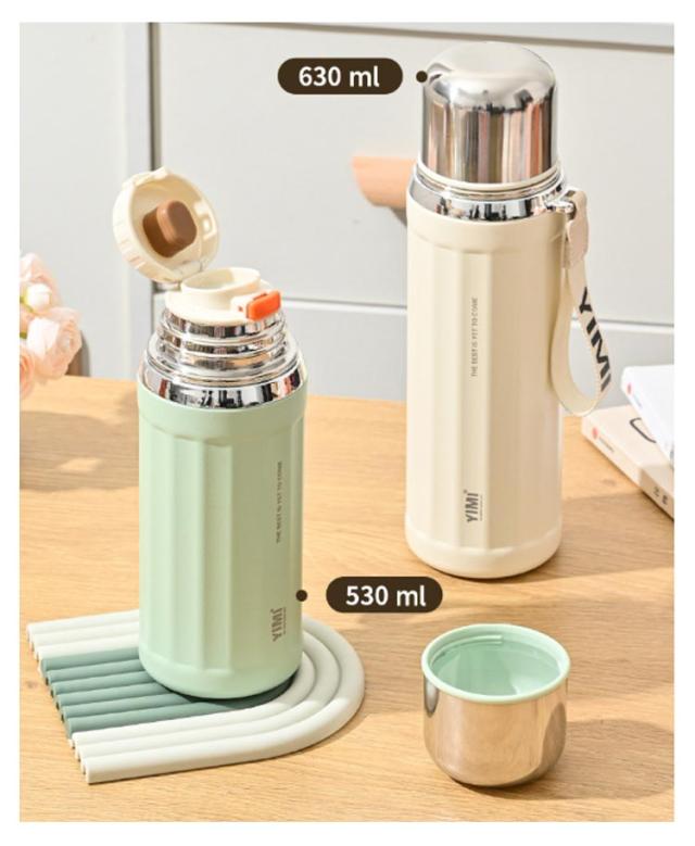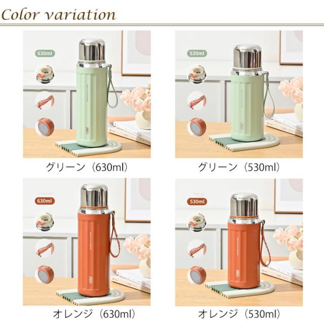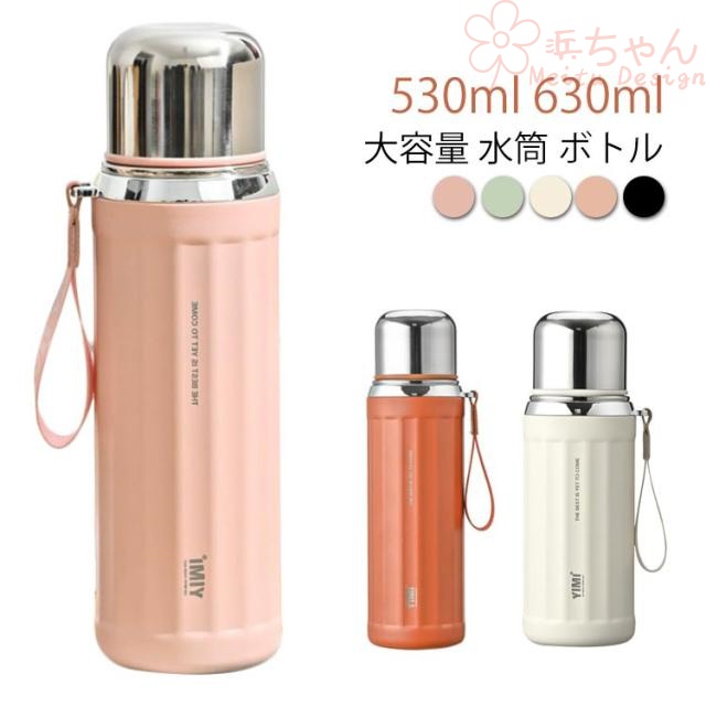| 530ml 630ml 大容量 水筒 ボトル 直飲みとコップ飲みの2WAYアウトドアに使いやすい水筒 真空二重構造下しっかり保冷・保温 飲み口を外して洗えるので、お手入れが簡単です 持ち手がついていて持ち運びにもとっても便利♪ | |