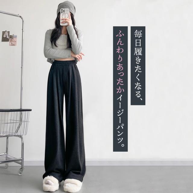 イージーパンツ ワイドパンツ 裏起毛 レディース 秋冬 あったかい もち米パンツ ハイウエスト ベルベット ワンマイルウェア 高身長
