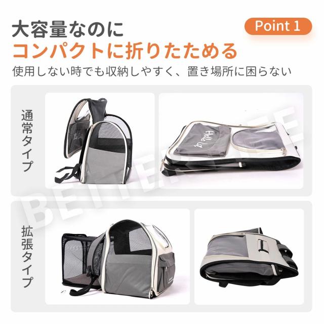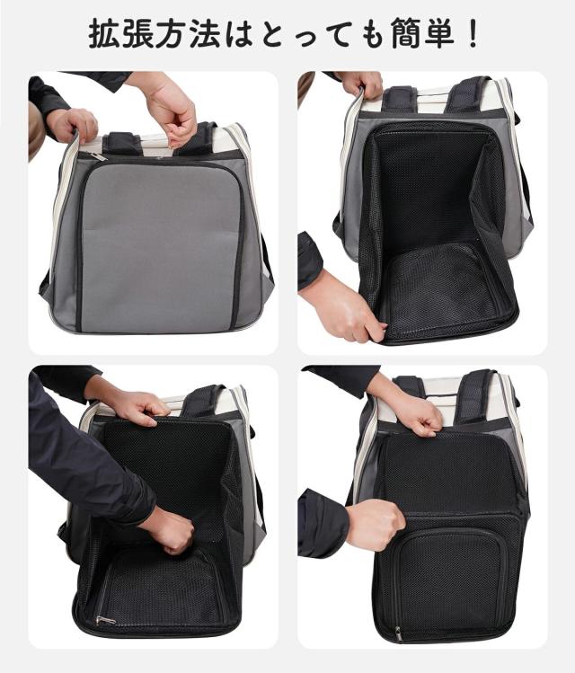 【拡張型】ペットキャリーバッグ 折りたたみ 大きめ リュック ペットキャリー バック ペットバッグ キャリーバッグ 猫用 犬用 ペット用品 小型犬 中型犬 トリミング 防災 通院 病院 ドライブ 避難用 メッシュ 軽量 折り畳み イヌ ねこ ネコ