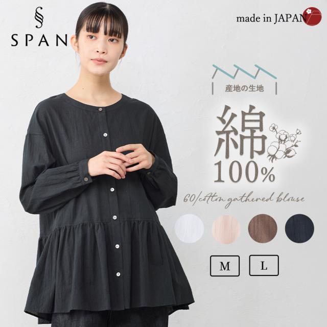 日本製 綿100 ブラウス ギャザー シャツ トップス 羽織り 前開き