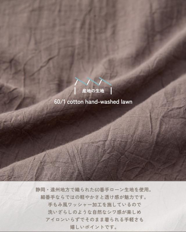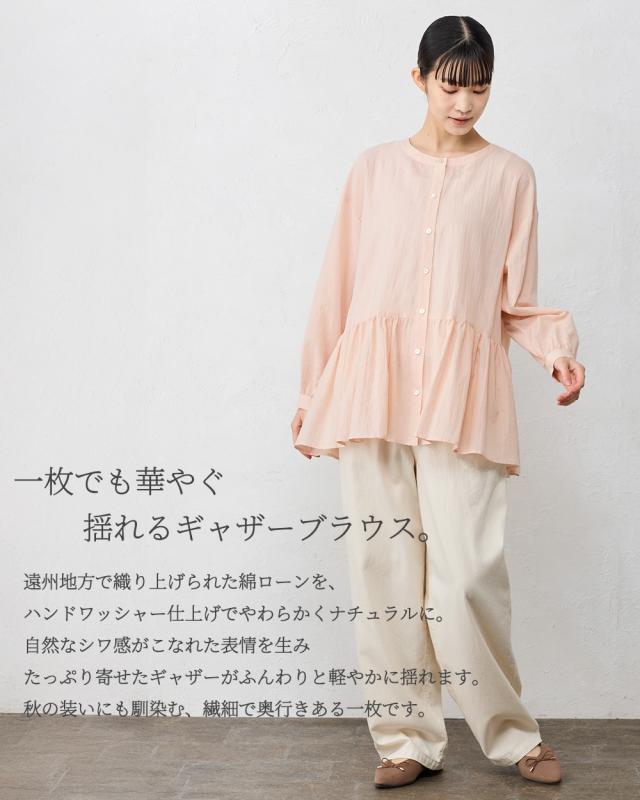 | 商品詳細/その他 | 遠州地方で織られた繊細なハンドワッシャーの綿ローンを使用したギャザーブラウス |