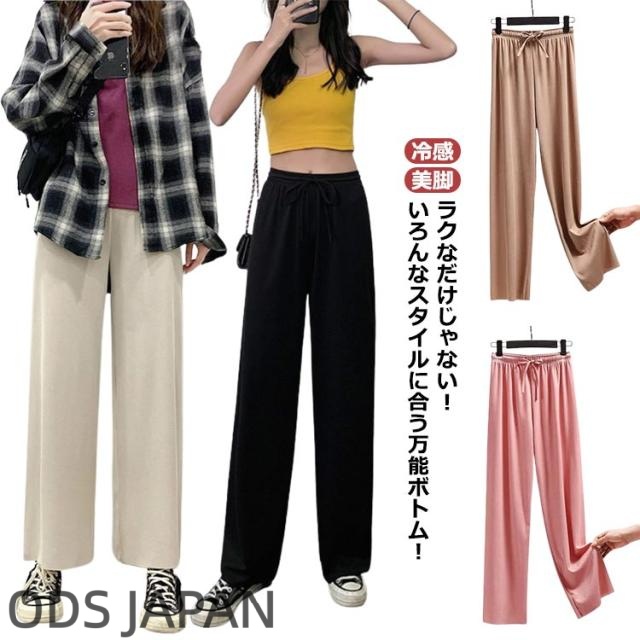 冷感 ロングパンツ ワイドパンツ レディース ガウチョパンツ 九分丈パンツ 無地パンツ ロング丈 九分丈 ヨガパンツ リラックスパンツ ダンスパンツ ゆったり 落ち感 さらさら お洒落 キレイめ カジュアル ボトムス 美脚 脚長 春 夏 秋 新作 送料無料