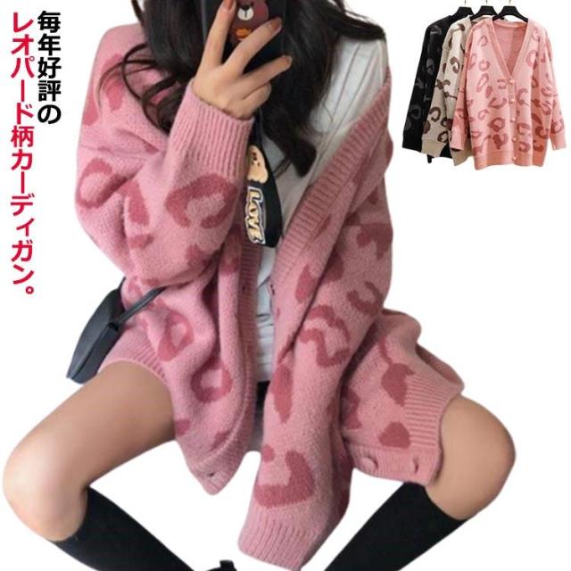 ニットカーディガン レオパード柄 レディース ジャガード ニットレディースファッション トップス ニット セーター セーター