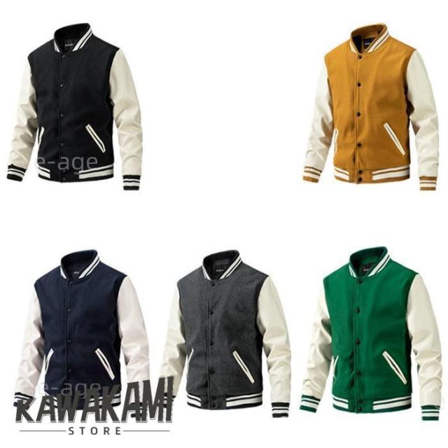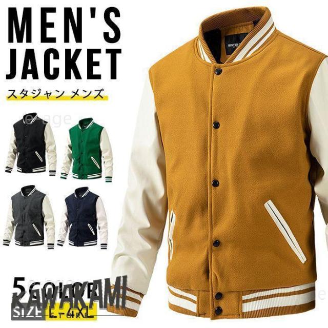 スタジャン メンズ 中綿ジャケット アウター ブルゾン 防寒 秋冬 メルトン 袖革 ラシャ 40代 50代 スタジアムジャンパー スタジアムジャケット 袖レザー 切り替え あったか ストリート系 大きいサイズ 秋服 冬服