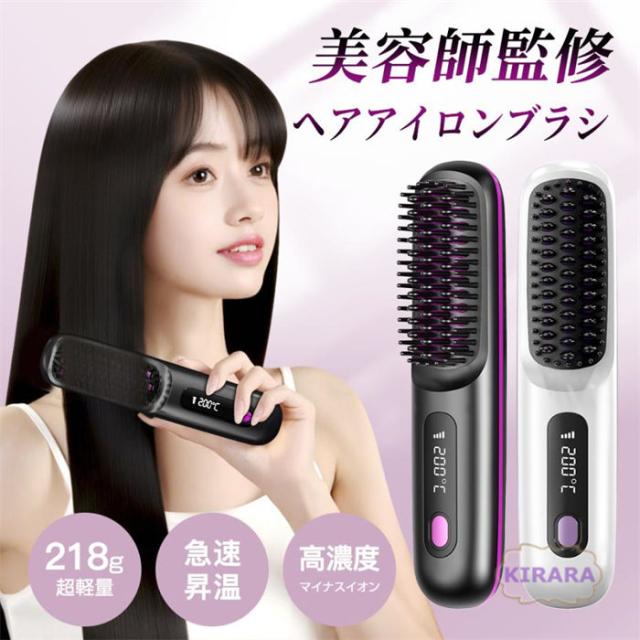 ヘアアイロンブラシ 超軽量 ヘアアイロン コードレス 充電式 ミニ 温度表記 ヒートブラシ 急速加熱 ストレートアイロン マイナスイオン 携帯用 前髪 ?内巻き 外巻 直髪