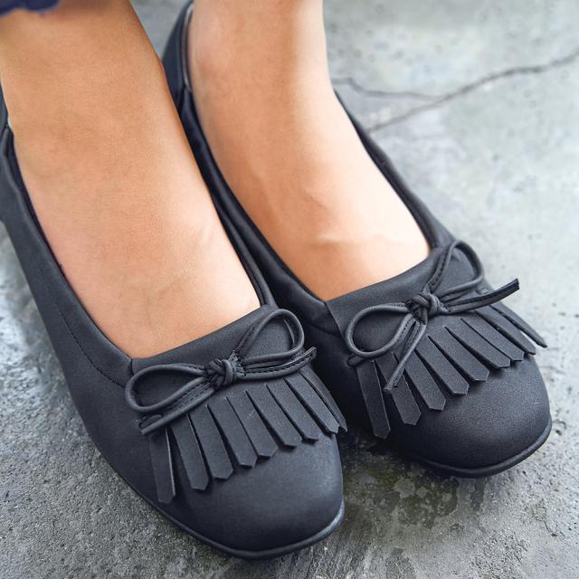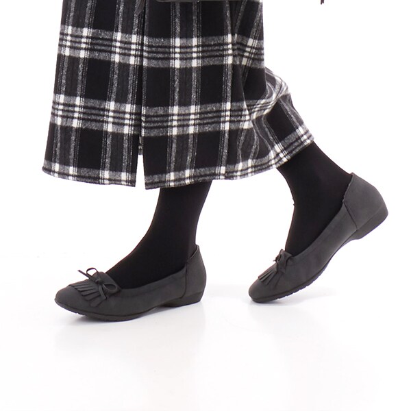【25秋冬新作】〔幅広3.5E〕ELLE PLANETE フリンジ リボン パンプス