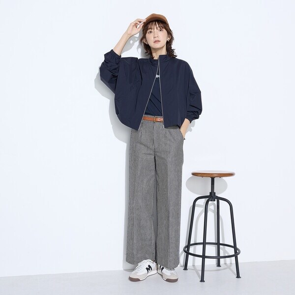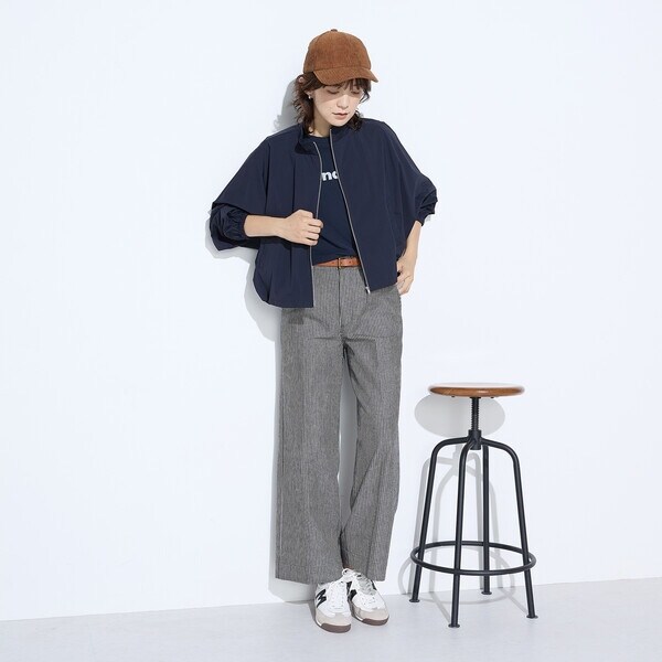 中にシャツやニットを着こんでも、もたつきにくいデザインです。
