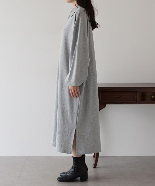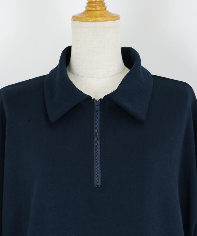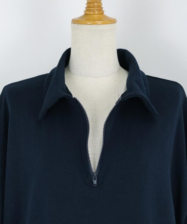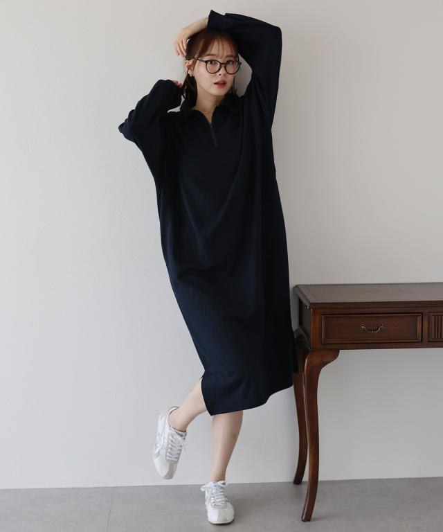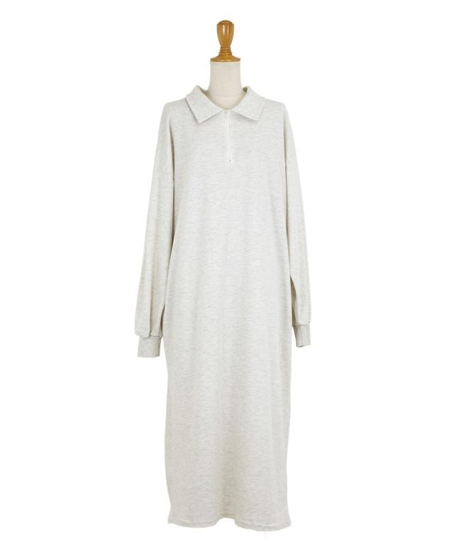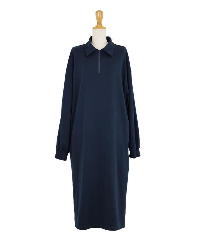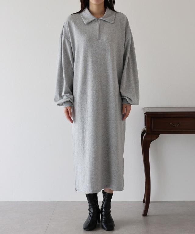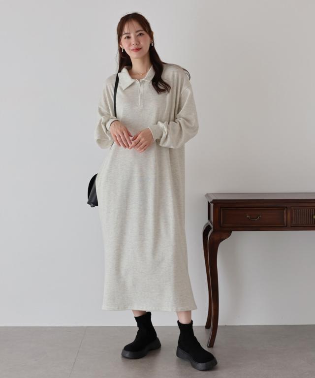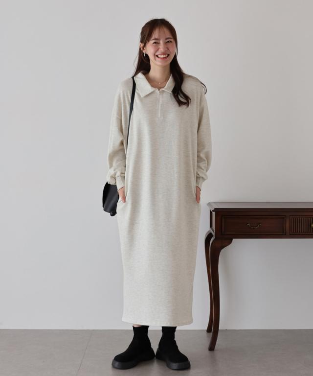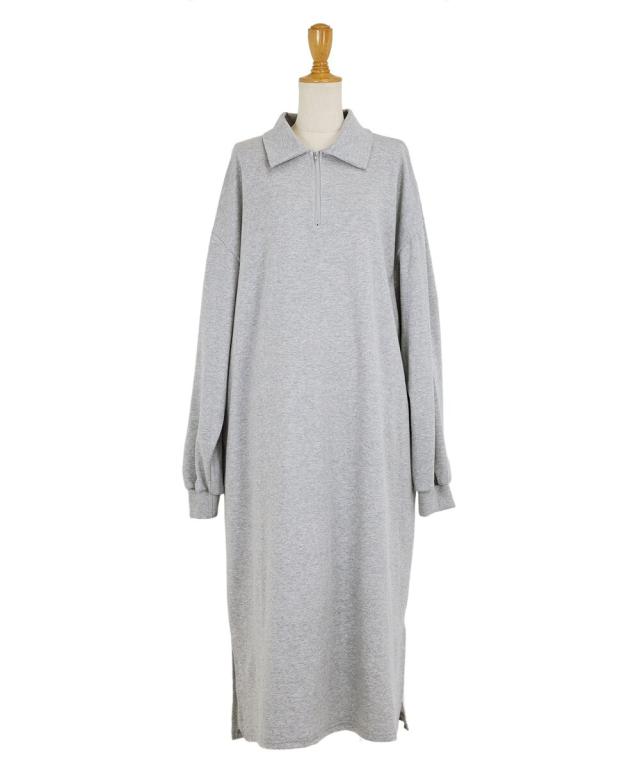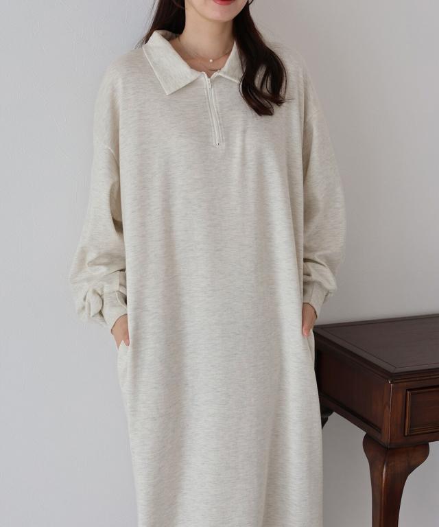 ハーフジップデザインで抜け感をプラスした、シンプルなスウェットワンピース