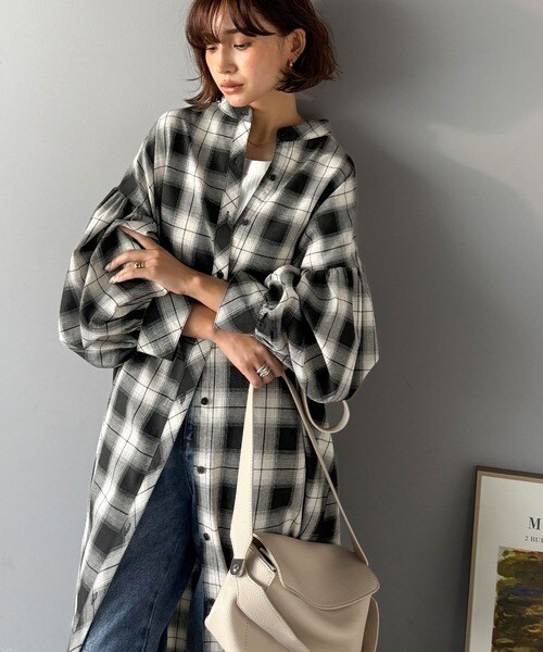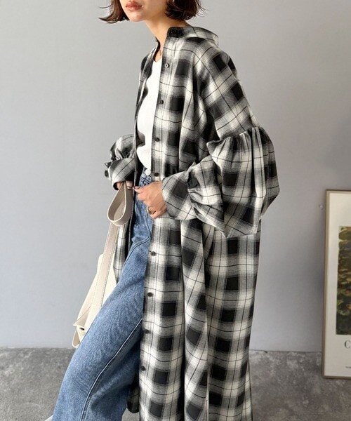 クラシカルエルフ(Classical Elf)/【25AW新作】着方自在でロングシーズン活躍◎柄アソートバンドカラービッグシャツワンピ