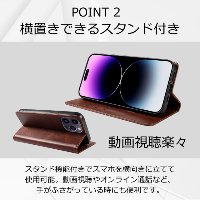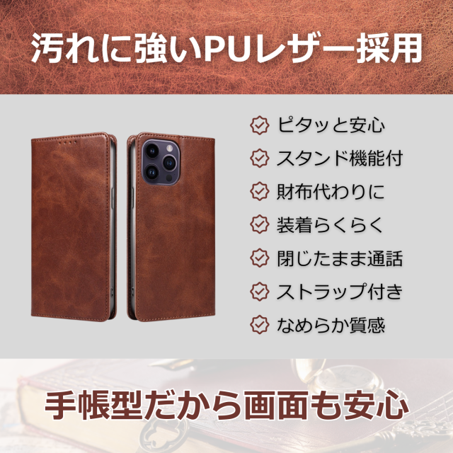 土日祝も発送★送料無料★ 手帳型スマホケース iPhone 15 Pro Max 対応 マグネット開閉&スタンド機能付き