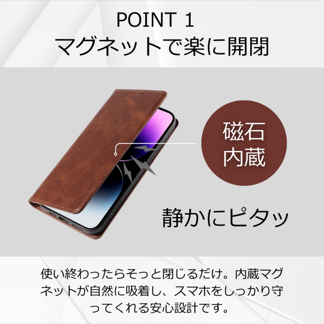 マグネット機能:マグネットで開閉可能