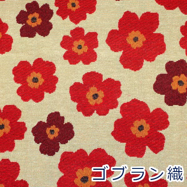 【10cm単位価格】 ゴブラン織 北欧風 大きい花柄 レッド フラワー ポリエステル70% 綿30% 生地 布 約140cm幅 5601-2 ゆうパケット0.5m対応 ( ハンドメイド 手作り バッグ おしゃれ インテリア 手芸 巾着 雑貨小物 )