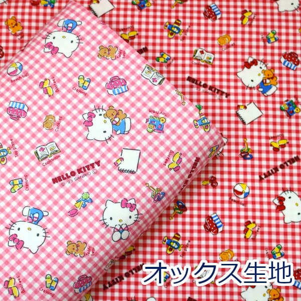 【10cm単位価格】 過去の人気デザインが復刻! ハローキティ KTギンガム HELLO KITTY サンリオ オックス 綿100% 生地 布 約110cm幅 入園入学 キャラクター 658007 ゆうパケット2m対応( ハンドメイド 手作り シューズ入れ 手芸 裁縫 巾着 雑貨小物 日本製 )